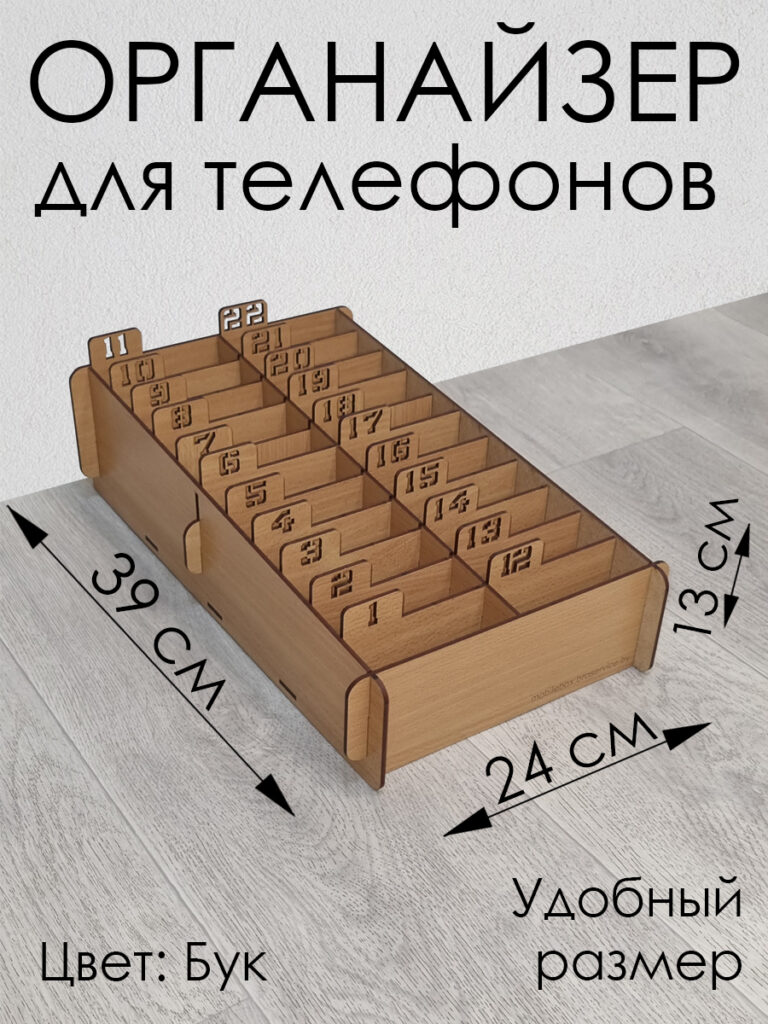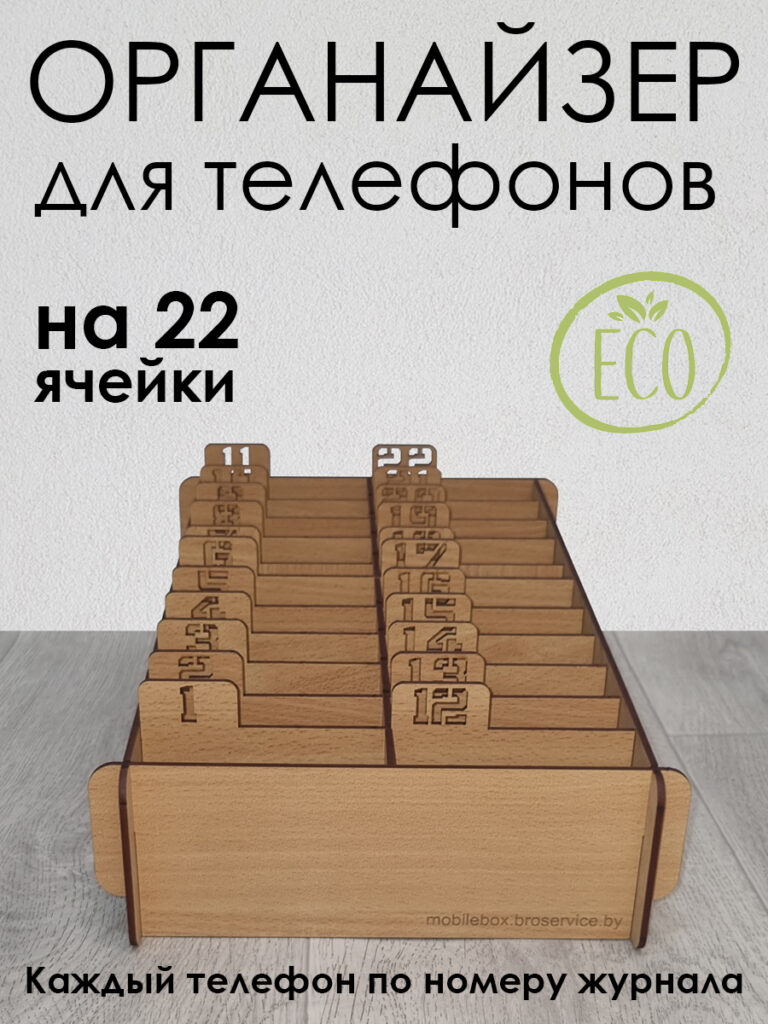 Подставка для телефонов в школу поможет организовать рабочий и учебный процесс, а так же телефоны в нужном порядке. Держатель для телефонов удобен в школе, хранить телефоны по списку журнала. Органайзер на 22 телефона сделан из экологичных материалов. Коробка для телефонов выполнена из ЛДВП или ХДФ, это Экологический материал, имеет различные Цвета и имитации Дерева. Ящик для телефонов в Школу имеет простую конструкцию с чёткой нумерацией по списку Журнала. Органайзер для хранения телефонов поставляется в разборном виде. Внутри есть инструкция по сборке, каждая деталь пронумерована, с сборкой справится даже ребёнок. В нашем магазине представлены другие Цвета и Размеры. Модели на 33, 22 и на 15 ячеек, Меньшее количество ячеек = меньше цена, а чтобы подставка для телефонов эстетично вписалась в ваш интерьер можно выбрать подходящий цвет. Нажмите на иконку нашего магазина и вы увидите другие цвета Ящиков для телефонов и Ящики на 15, 22, 33 для мобильных телефонов.