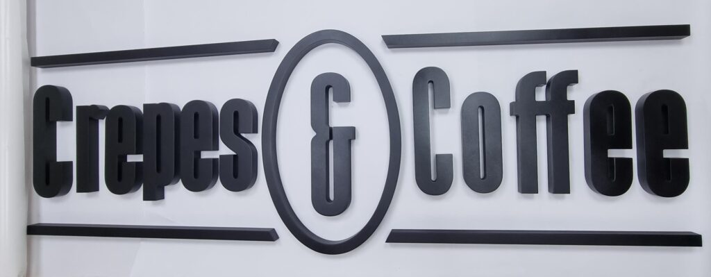 Объёмные буквы из МДФ 30мм покрашены интерьерной мебельной краской в Черный цвет.