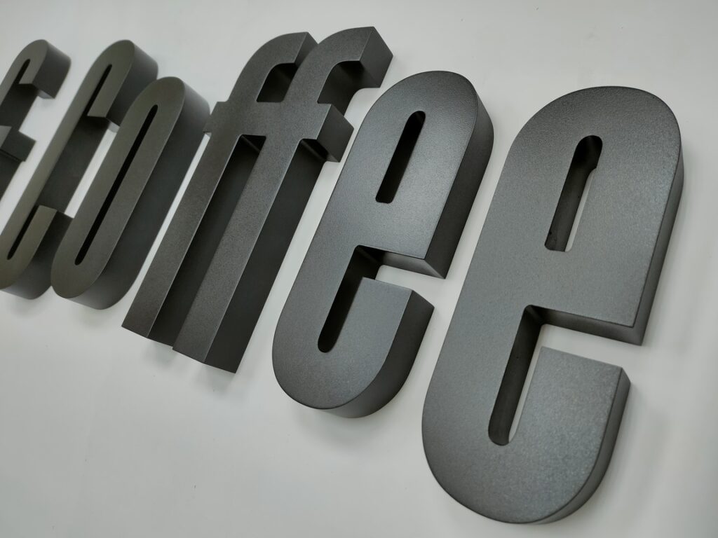 Буквы вырезаны из Толстого материала, что изначально придаёт объём, при малом размере буквы.
