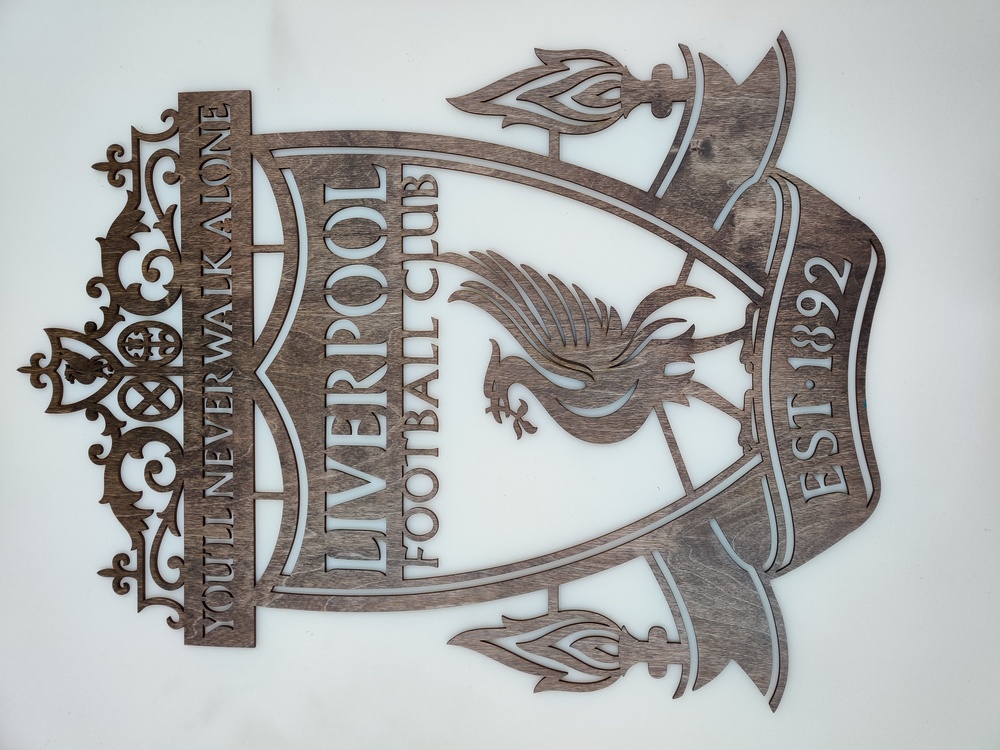 Герб выполнен из фанеры 6мм, покрыт морилкой + матовым лаком
