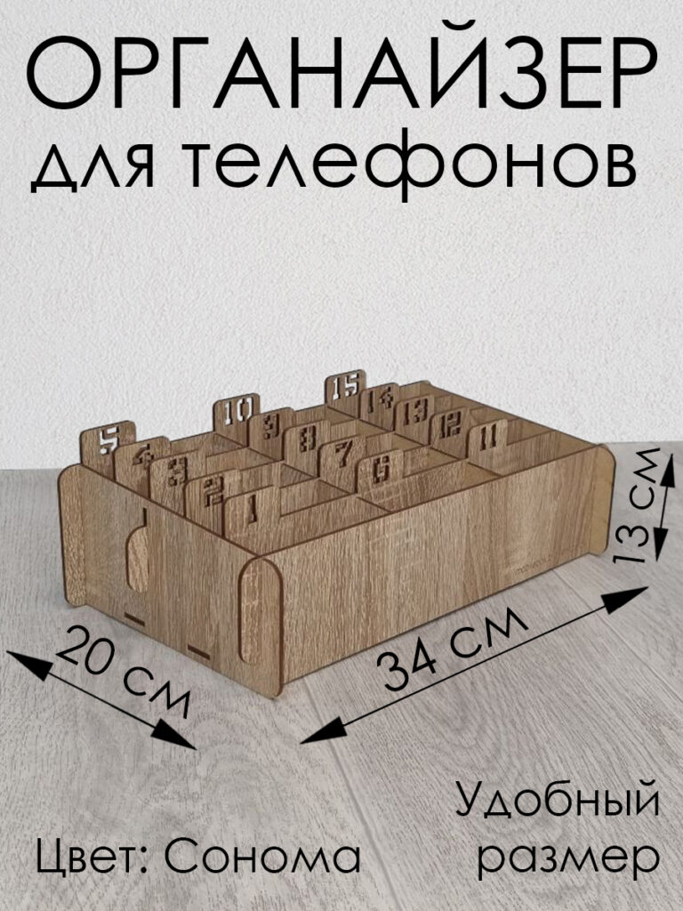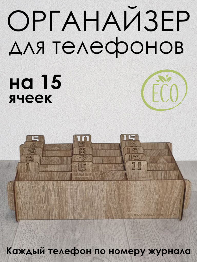 Подставка для телефонов в школу поможет организовать рабочий и учебный процесс во время занятий, наведёт порядок, а так же сохранит телефоны в нужном порядке. Держатель для телефонов удобен в школе, хранить телефоны по списку журнала. Органайзер на 15 телефонов сделан из экологичных материалов. Коробка для телефонов выполнена из ЛДВП или ХДФ, это Экологический материал, имеет различные Цвета и имитации Дерева. Ящик для телефонов в Школу имеет простую конструкцию с чёткой нумерацией по списку Журнала. Органайзер для хранения телефонов поставляется в разборном виде. Внутри есть инструкция по сборке, каждая деталь пронумерована, с сборкой справится даже ребёнок. Как говорят наши клиенты: "Когда дети своими руками собрали Органайзер для телефонов, они сами захотели складывать свои телефоны в ящик, потому что стали причастны к полезному делу и знают, что их телефоны в целостности и сохранности". В нашем магазине представлены другие Цвета и Размеры. Модели на 33, 22 и на 15 ячеек, Меньшее количество ячеек = меньше цена, а чтобы подставка для телефонов эстетично вписалась в ваш интерьер можно выбрать подходящий цвет. Нажмите на иконку нашего магазина и вы увидите другие цвета Ящиков для телефонов и Ящики на 15/22 для мобильных телефонов.