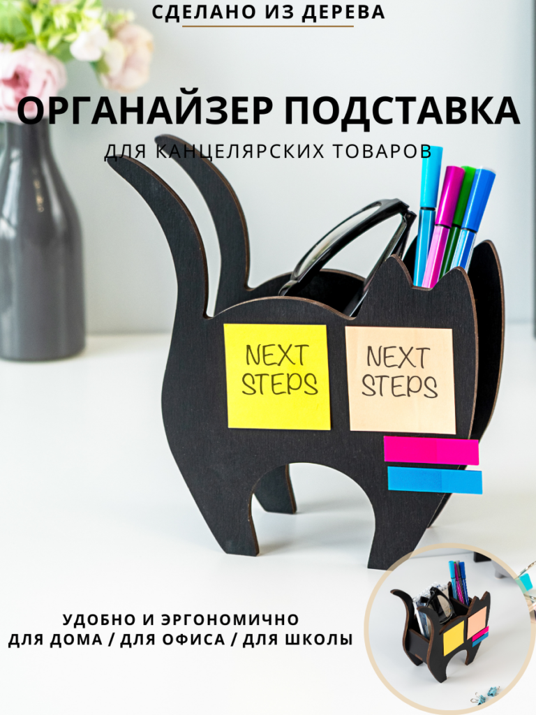 Органайзер для канцелярии настольный - идеальное решение для организации рабочего пространства в доме, офисе или учебной среде. Выполненный из дерева, этот органайзер сочетает в себе функциональность и стильный дизайн.