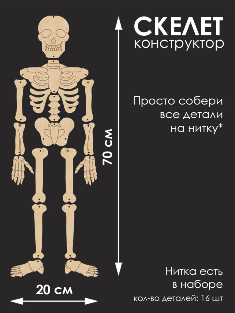 Скелет конструктор деревянный – это уникальная игрушка, которая позволит весело и познавательно провести время. Размеры конструктора составляют 70см на 20см, что делает его достаточно компактным для удобного хранения и транспортировки.