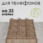 Органайзер на 33 телефона сделан из экологичных материалов. Коробка для телефонов выполнена из ЛДВП или ХДФ, это Экологический материал, имеет различные Цвета и имитации Дерева.